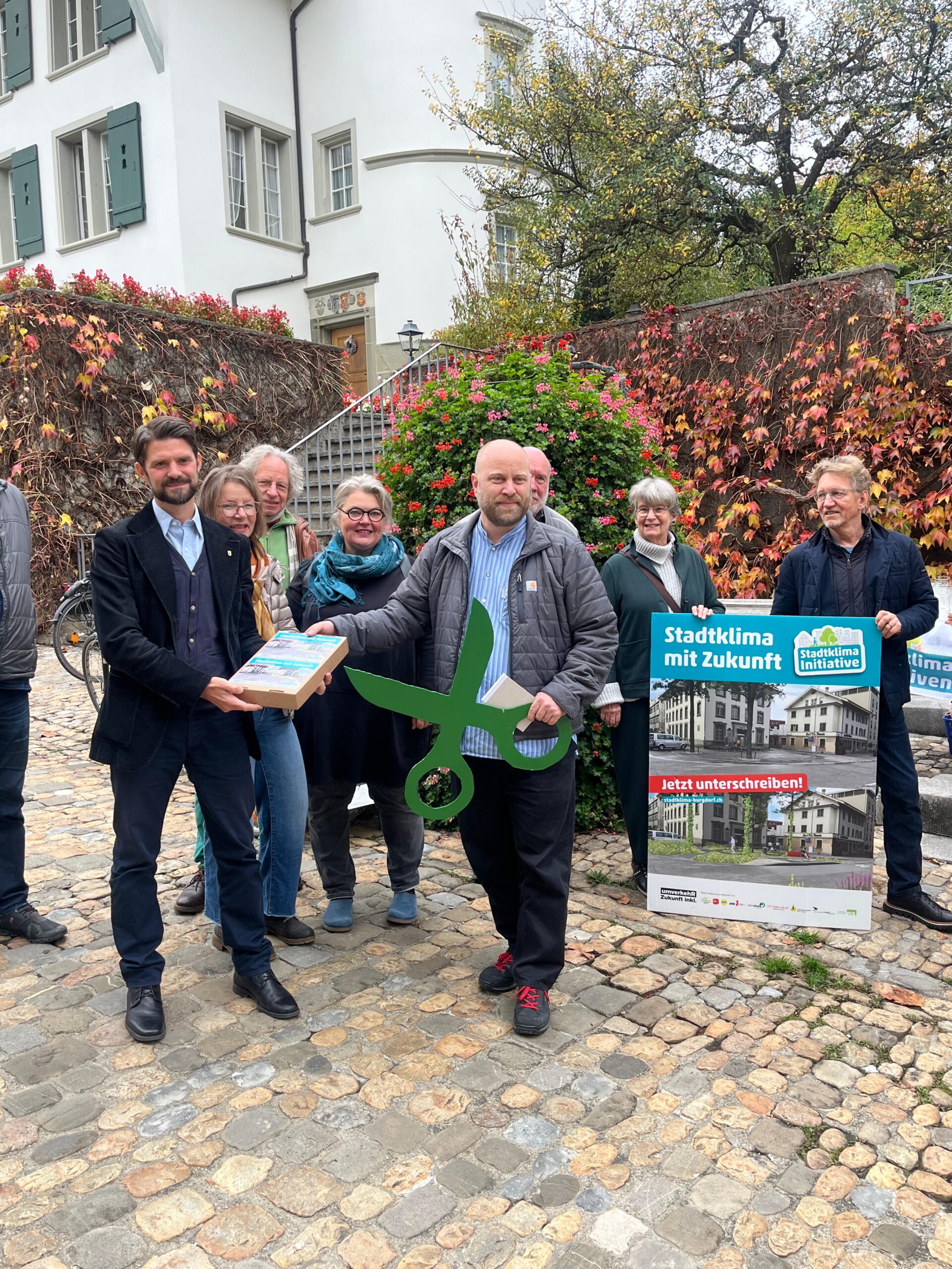 In nur fünf Monaten hat jede achte stimmberechtigte Person in Burgdorf die städtische Initiative unterschrieben. Die Hürde von 10% der Stimmberechtigten ist so mehr als erfüllt. Damit bekommt die Entsiegelung im Strassenraum und die Begrünung eine neue Dringlichkeit. Die Politik ist gefordert, Lösungen gegen die Hitzeinseln in der Stadt zu präsentieren. Die RGM-Parteien und die Umweltverbände haben offenbar einen Nerv der breiten Bevölkerung getroffen. Mit der Übergabe einer symbolischen grünen Schere zum Aufschneiden des grauen Asphalts geht der Ball nun an den Gemeinderat.